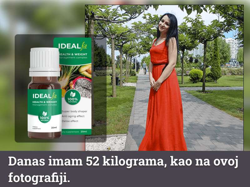 Prvi put sam čula za Idealfit, preporučila mi ih je prijateljica koja je dijetetičarka. Kupila sam ih i evo rezultata! Kapi već dugo ne uzimam, ali kilaža se ne vraća - fantastičan proizvod!