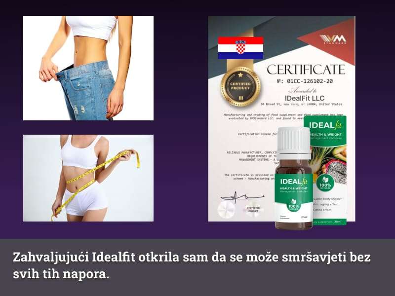 Bok svima! Već dva tjedna koristim Idealfit, naručila sam ih sa službene stranice koju ste preporučili. Izgubila sam 5 kg, i trbuh i bokovi su mi se smanjili! Sretna sam! Prije kad sam išla u teretanu, nisam mogla postići ovakav efekt!